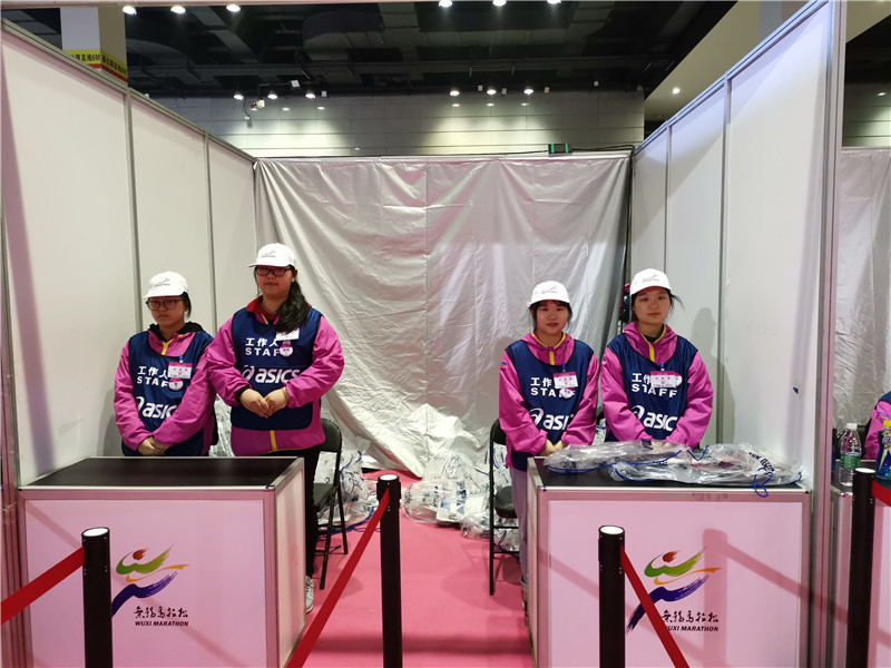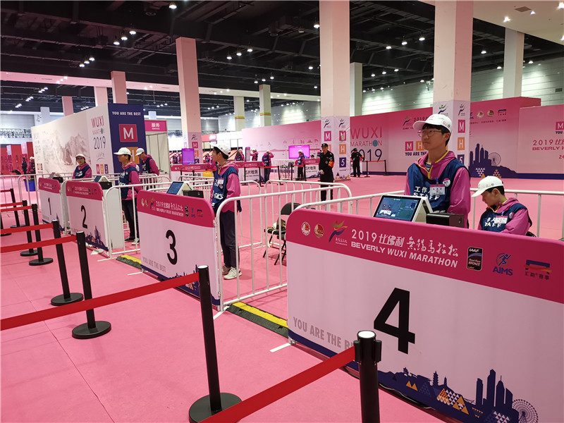 3月21日至23日,我校共組織350名師生志愿者在號(hào)碼布發(fā)放、存衣包發(fā)放、整理、賽事紀(jì)念T恤發(fā)放、人臉識(shí)別系統(tǒng)入場(chǎng)引導(dǎo)、檢錄、芯片檢測(cè)服務(wù)、現(xiàn)場(chǎng)秩序管理、畫(huà)面講解、擺渡車等14個(gè)崗位首次采用流水線式賽前物資發(fā)放模式做好賽前志愿服務(wù)工作,為2019無(wú)錫馬拉松保駕護(hù)航。