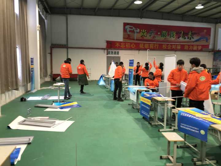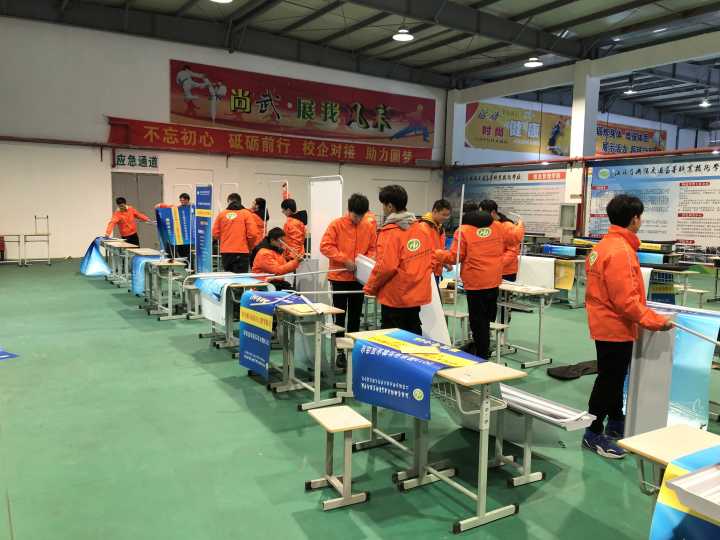 從7號開始,志愿者們就已經(jīng)投入到雙選會的準備工作中,布置會場、搭放展架、擺放展位桌椅等,在老師的帶領(lǐng)下為雙選會的隆重舉行下足了功夫。