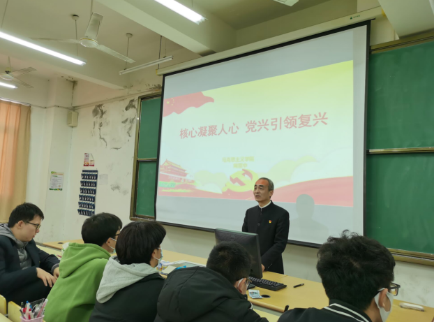 為了讓我校師生深入掌握十九屆六中全會精神內(nèi)涵,進(jìn)一步懂得中國共產(chǎn)黨一百年來帶領(lǐng)中國人民歷經(jīng)革命、建設(shè)、改革時期所取得的偉大成就以及中國共產(chǎn)黨總結(jié)出來的寶貴歷史經(jīng)驗,能夠使廣大師生牢記黨的初心使命,強(qiáng)化責(zé)任擔(dān)當(dāng),11月25日下午,馬克思主義學(xué)院王龍生副教授和聞惠中副教授分別在弘毅樓508階教和510階教為錢榮校區(qū)六個學(xué)院的學(xué)生干部和入黨積極分子宣講了以“核心凝聚人心 黨興引領(lǐng)復(fù)興”為主題的十九屆六中全會專題講座。講座活動由基礎(chǔ)教學(xué)部主任、馬克思主義學(xué)院常務(wù)副院長陳建明和思政教研室黨支部書記張海濱主持。
