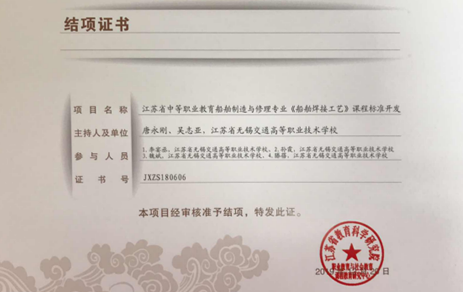 結(jié)業(yè)證書-江蘇省中等職業(yè)教育船舶制造與修理專業(yè)〈船舶焊接工藝〉課程標(biāo)準開發(fā)