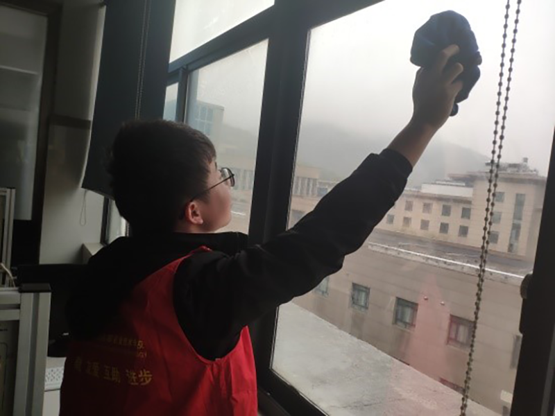 在班主任蔡昱燦老師的帶領(lǐng)下志愿者們被分成了9個(gè)小組。每個(gè)小組都有著各自的任務(wù)?;顒?dòng)中,志愿者在各自負(fù)責(zé)區(qū),發(fā)揚(yáng)不怕苦、不怕累的奉獻(xiàn)精神,將學(xué)校的實(shí)習(xí)樓中的垃圾和衛(wèi)生死角進(jìn)行了集中清理,擦拭著每間教室的門(mén)和窗戶(hù),地板也被打掃的一塵不染。經(jīng)過(guò)大家齊心協(xié)力、分工合作,實(shí)訓(xùn)樓煥然一新。
