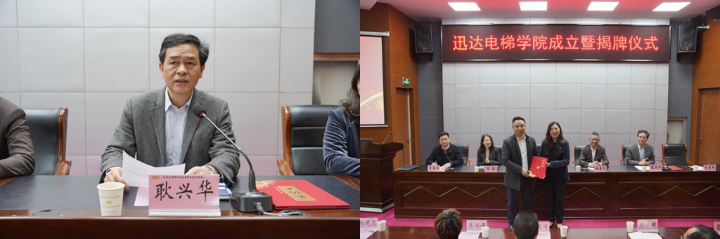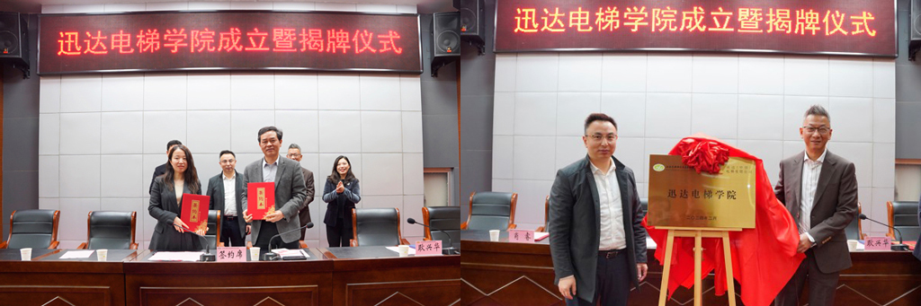 儀式上,副校長(zhǎng)耿興華、迅達(dá)(中國(guó))電梯有限公司蘇滬區(qū)人力資源高級(jí)經(jīng)理肖睿代表校企雙方簽署了共建學(xué)院協(xié)議,校長(zhǎng)李進(jìn)、迅達(dá)(中國(guó))電梯有限公司蘇滬區(qū)總經(jīng)理徐春劍共同為迅達(dá)電梯學(xué)院揭牌。