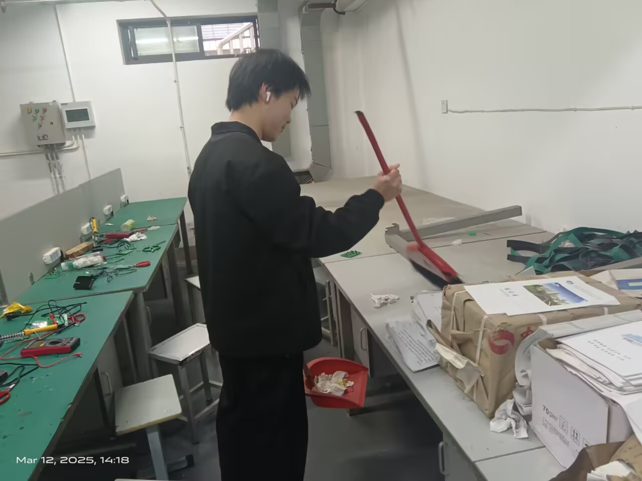 活動(dòng)期間,同學(xué)們分工協(xié)作,手持掃帚、抹布等工具,對車間設(shè)備、地面、門窗及衛(wèi)生死角進(jìn)行全面清潔,大家互幫互助,整理工具臺(tái)、清運(yùn)垃圾,充分展現(xiàn)團(tuán)結(jié)奉獻(xiàn)精神。經(jīng)過兩小時(shí)勞動(dòng),車間煥然一新。