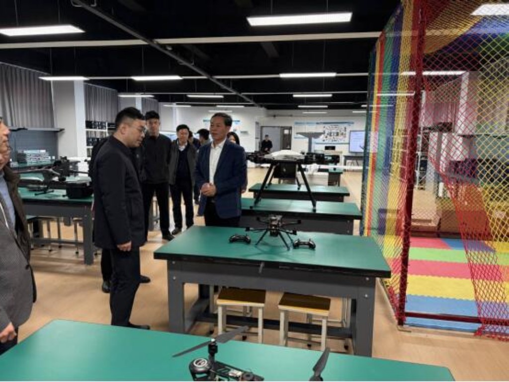 徐榮董事長一行實地查看我校無人機實訓(xùn)場地、培訓(xùn)中心改造及設(shè)備籌備情況,詳細(xì)了解培訓(xùn)資質(zhì)辦理、招生報名、場地變更等工作推進進度。雙方圍繞低空經(jīng)濟產(chǎn)業(yè)布局、無人機飛手人才培養(yǎng)、合規(guī)飛行管理、實景場景應(yīng)用等核心內(nèi)容深入研討,達(dá)成多項合作共識。