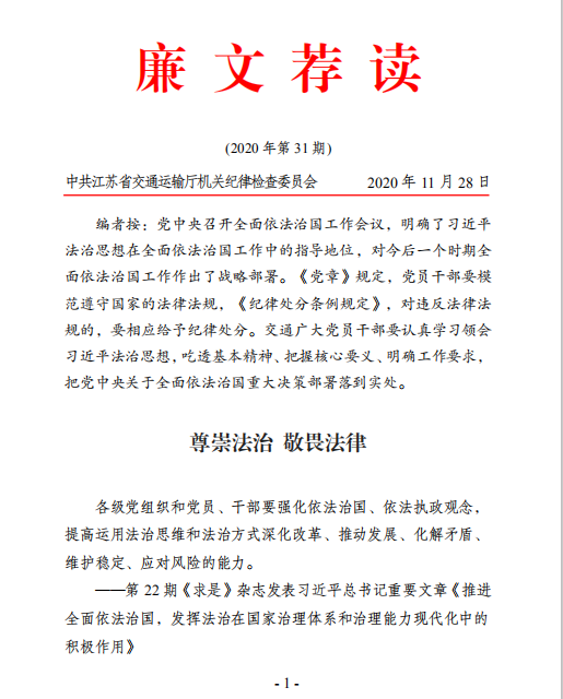 廉文薦讀第31期——尊崇法治 敬畏法律