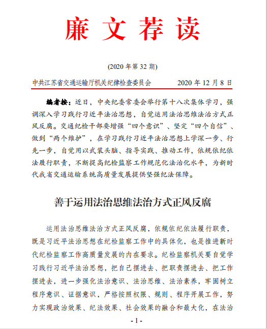 廉文薦讀第32期——善于運(yùn)用法治思維法治方式正風(fēng)反腐