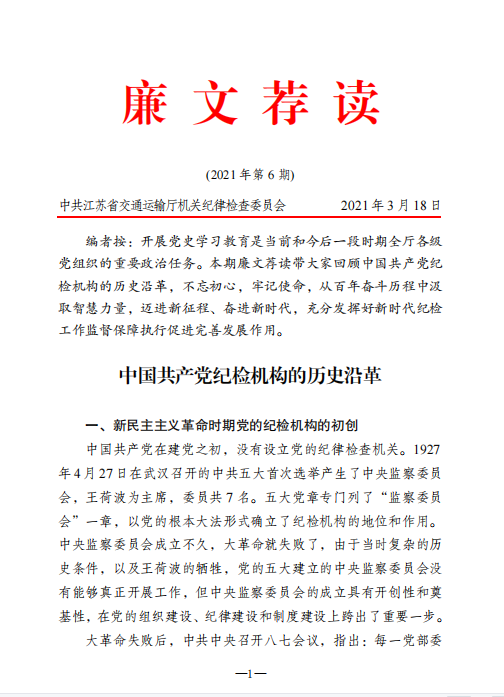廉文薦讀2021年第6期——中國(guó)共產(chǎn)黨紀(jì)檢機(jī)構(gòu)的歷史沿革