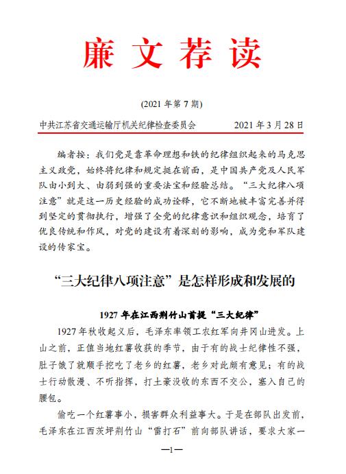 廉文薦讀2021年第7期——“三大紀(jì)律八項注意”是怎樣形成和發(fā)展的