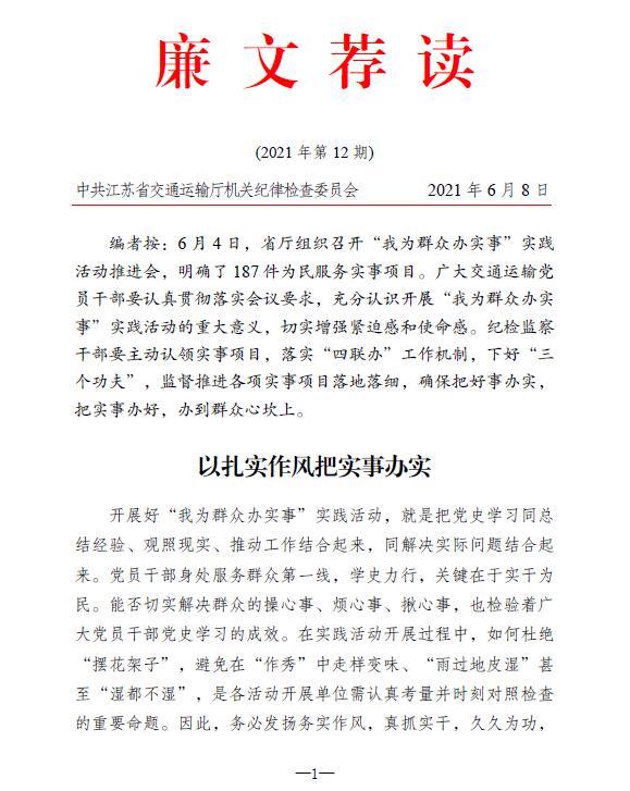 2021年廉文薦讀第12期——以扎實(shí)作風(fēng)把實(shí)事辦實(shí)