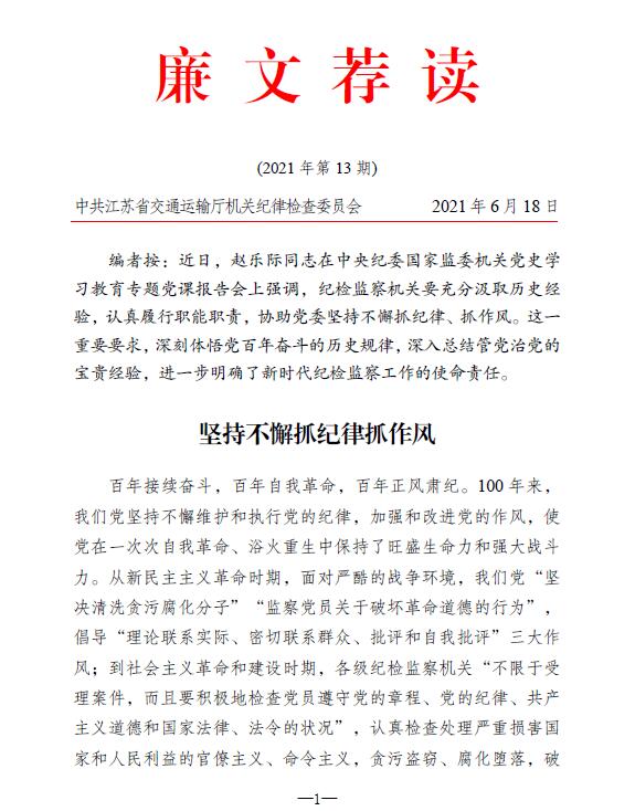 2021年廉文薦讀第13期——堅(jiān)持不懈抓紀(jì)律抓作風(fēng)