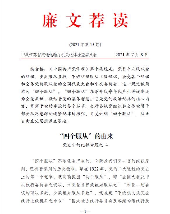 2021年廉文薦讀第15期——“四個(gè)服從”的由來(lái)