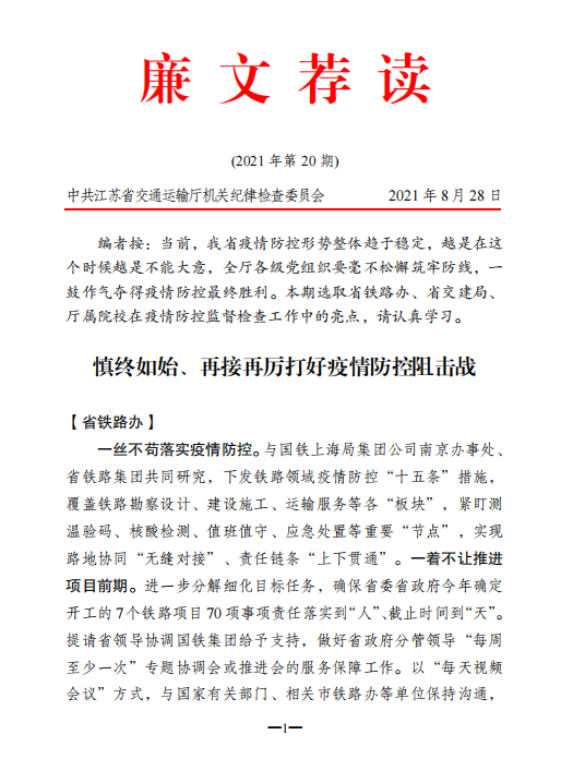 2021年廉文薦讀第20期——慎終如始、再接再厲打好疫情防控阻擊戰(zhàn)