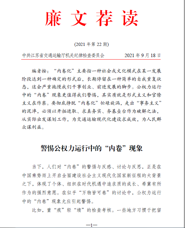2021年廉文薦讀第22期——警惕公權(quán)力運(yùn)行中的“內(nèi)卷”現(xiàn)象