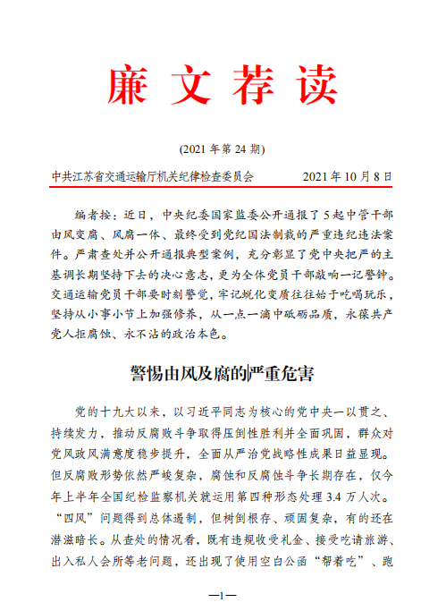 2021年廉文薦讀第24期——警惕由風(fēng)及腐的嚴(yán)重危害