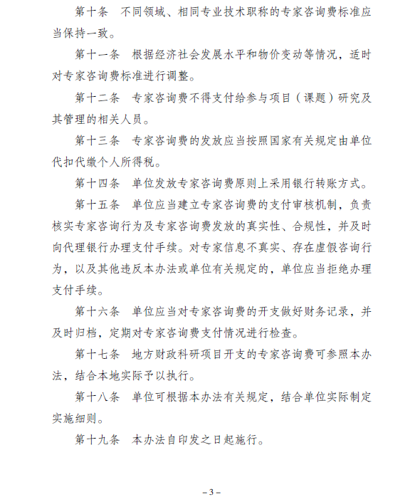 中央財(cái)政科研項(xiàng)目 專家咨詢費(fèi)管理辦法