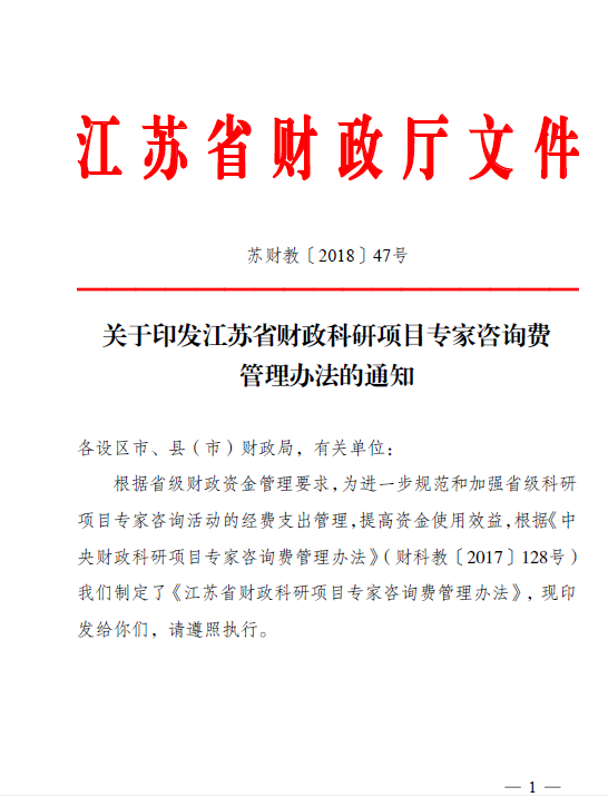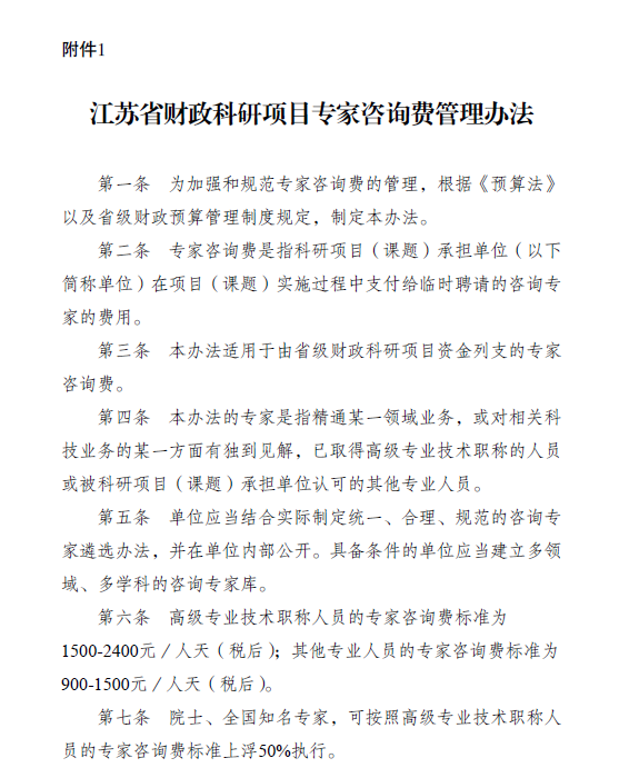 江蘇省財(cái)政科研項(xiàng)目專家咨詢費(fèi)管理辦法