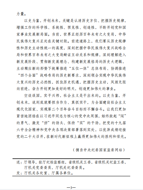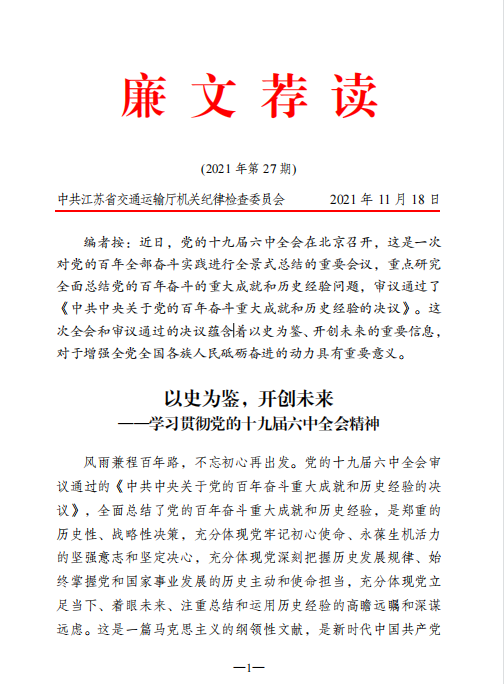 2021年廉文薦讀第27期——以史為鑒 開創(chuàng)未來 學(xué)習(xí)貫徹黨的十九屆六中全會精神