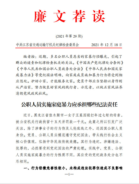 2021年廉文薦讀第29期——公職人員實施家庭暴力應承擔哪些紀法責任