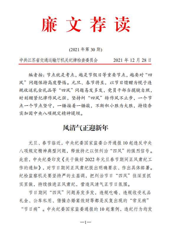 2021年廉文薦讀第30期——風(fēng)清氣正迎新年