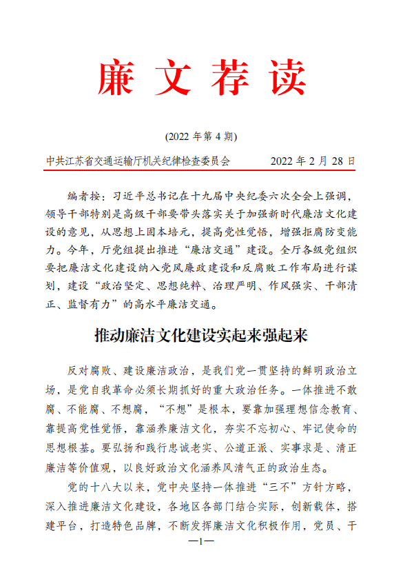 2022年廉文薦讀第4期——推動(dòng)廉潔文化建設(shè)實(shí)起來強(qiáng)起來