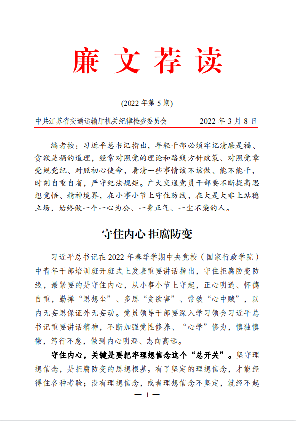 2022年廉文薦讀第5期——守住內(nèi)心 拒腐防變