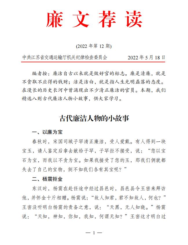 2022年廉文薦讀第12期——古代廉潔人物的小故事