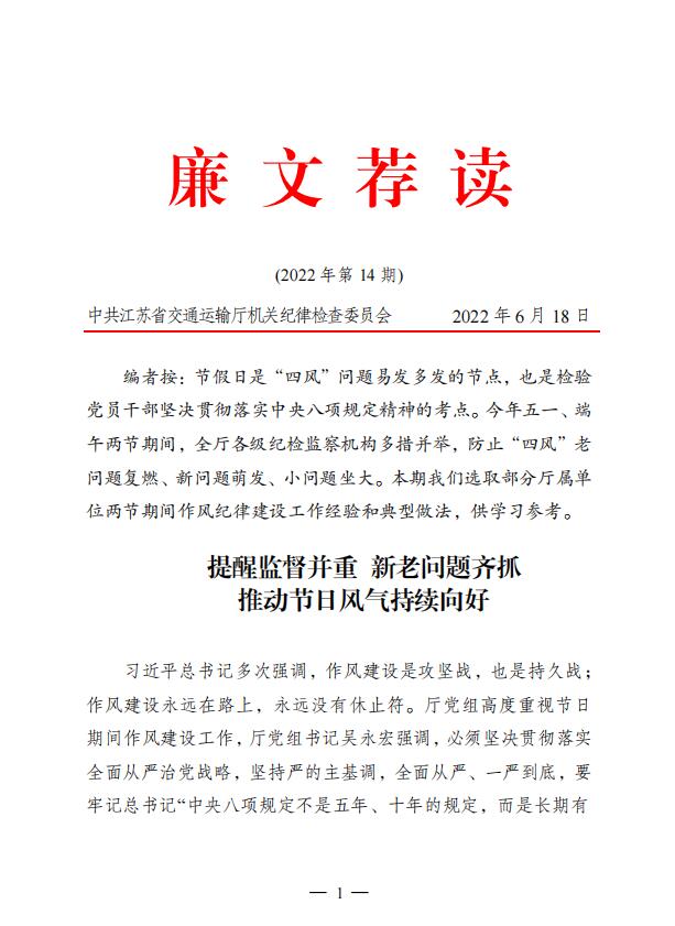 2022年廉文薦讀第14期——提醒監(jiān)督并重 新老問題齊抓 推動節(jié)日風(fēng)氣持續(xù)向好