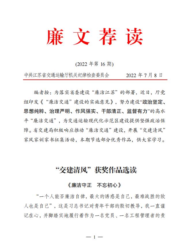 2022年廉文薦讀第16期——《交建清風(fēng)》獲獎作品選讀