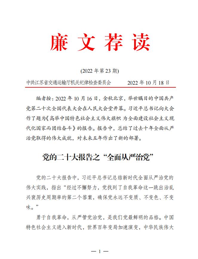 2022年廉文薦讀第23期——黨的二十大報告之“全面從嚴治黨”