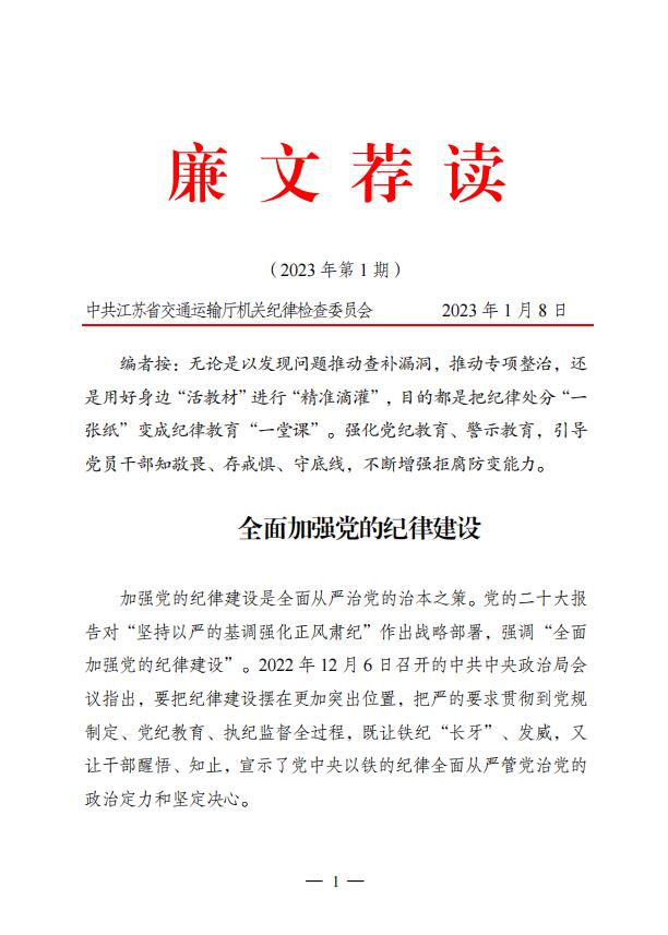 2023年廉文薦讀第1期——全面加強(qiáng)黨的紀(jì)律建設(shè)