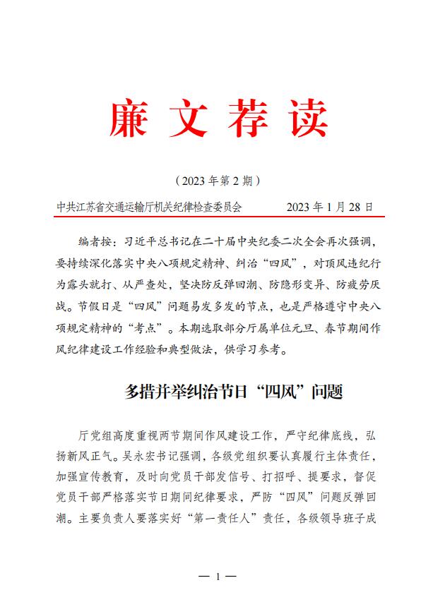 2023年廉文薦讀第2期——多措并舉糾治節(jié)日“四風(fēng)”問題