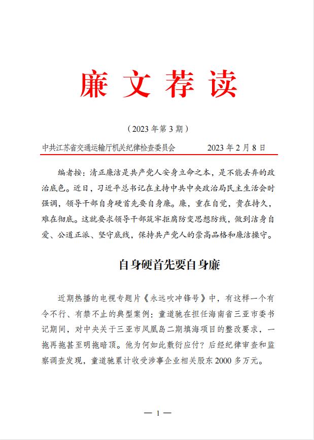 2023年廉文薦讀第3期——自身硬首先要自身廉
