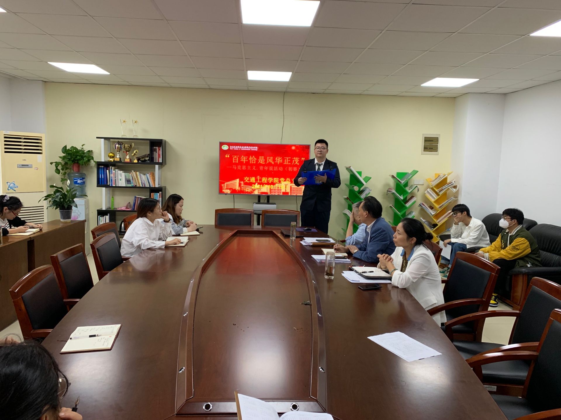 為把深入學(xué)習(xí)貫徹習(xí)近平新時(shí)代中國特色社會主義思想、黨史學(xué)習(xí)主題教育和習(xí)近平總書記“七一”重要講話精神緊密結(jié)合起來,2021年10月15日,我院在弘毅樓一樓會議室舉行了“百年恰是風(fēng)華正茂”--馬克思主義青年說演講比賽,學(xué)院教職工、參賽選手及部分學(xué)生代表參加了活動(dòng)。
