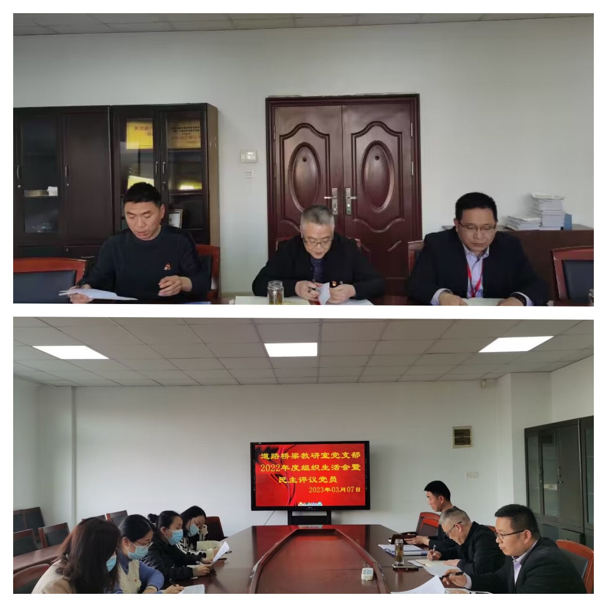2023年3月7日下午,道路橋梁教研室黨支部召開2022年度組織生活會(huì)暨開展民主評(píng)議黨員,會(huì)議由支部書記史志樓同志主持,紀(jì)檢監(jiān)察室沈曉偉處長(zhǎng)列席會(huì)議。