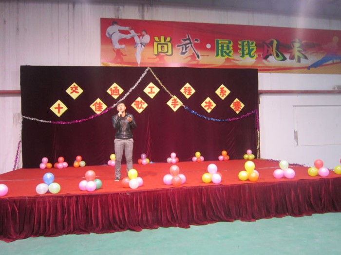 為豐富學(xué)生課余生活,努力營造積極向上、健康文明的校園文化氣氛,交通工程系“show,我青春”十佳歌手比賽決賽于2013年11月13日在動感活動中心三樓隆重舉行。系主任陳建明老師、書記毛蘭霞老師、團(tuán)總支李俊老師、史潔老師、金龍老師、李玉君老師、莫非老師、趙巧明老師以及系學(xué)生會主席石明仁同學(xué)擔(dān)任了本次決賽的評委。
