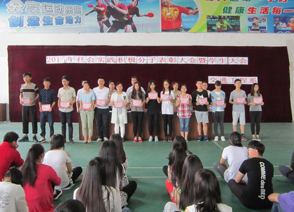 2015年5月28日下午,交通工程系在學(xué)生活動(dòng)中心召開(kāi)2015社會(huì)積極分子表彰大會(huì)暨學(xué)生大會(huì)。我系金龍老師主持召了本次大會(huì),系部主任陳建明老師、副主任鄒定南老師、黨支部書(shū)記毛蘭霞老師、團(tuán)總支書(shū)記李俊老師以及交通系全體學(xué)生參加了本次大會(huì)。