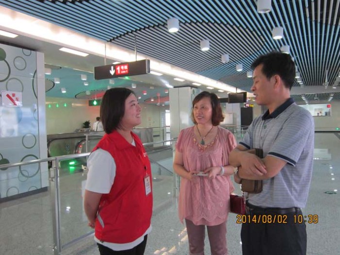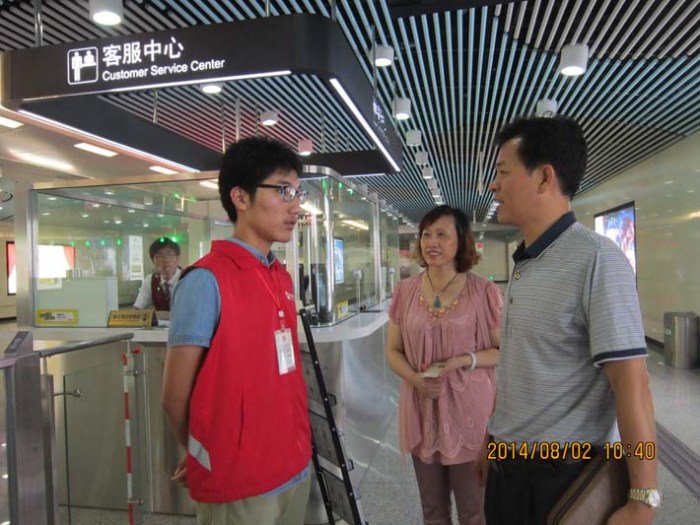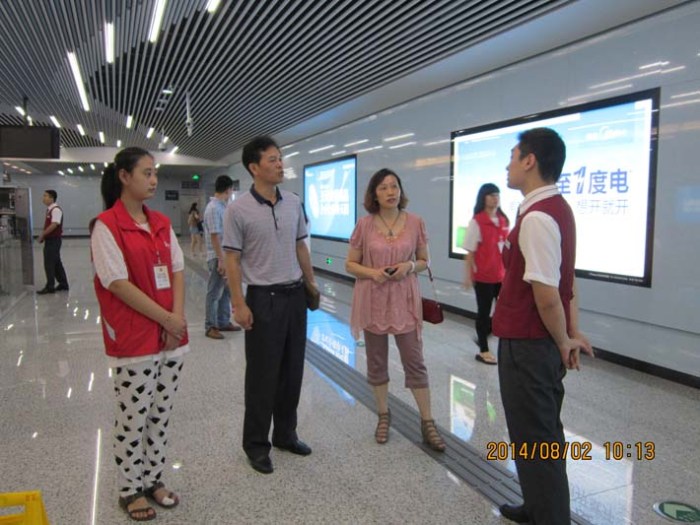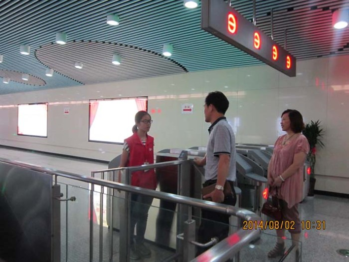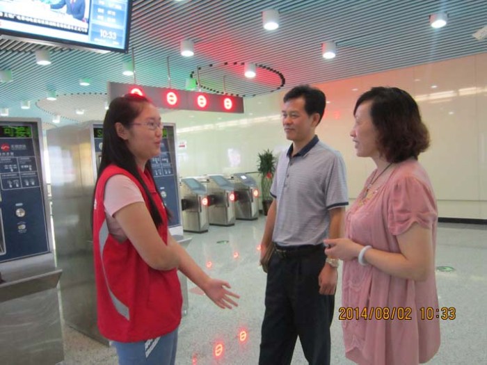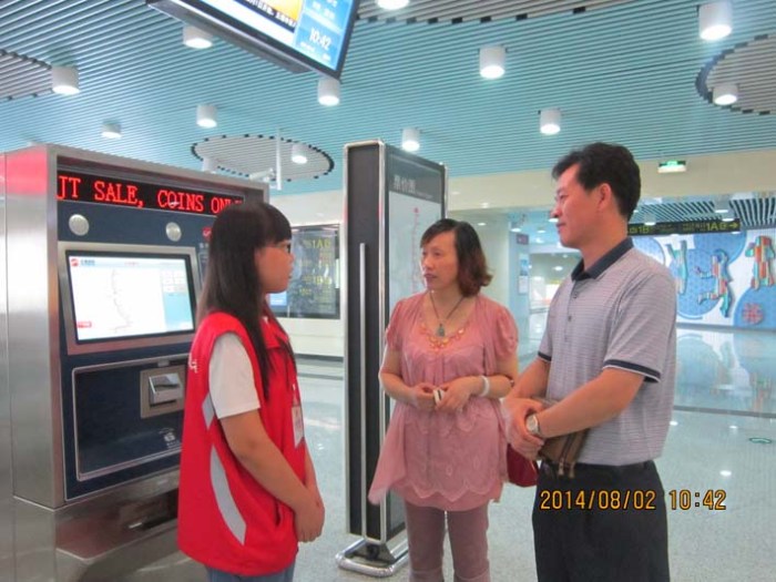 2014年7月初始,交通工程系32名學(xué)生參與了無(wú)錫地鐵一號(hào)線志愿者工作。他們分布在一號(hào)線文化宮、長(zhǎng)廣溪和江南大學(xué)3個(gè)站點(diǎn),為期2個(gè)月28天,56個(gè)班次。從早上8點(diǎn)至11點(diǎn)以及下午17點(diǎn)至20點(diǎn)兩個(gè)客流高峰時(shí)段,將有12-14名志愿者進(jìn)行自動(dòng)售票機(jī)、檢票閘機(jī)、站臺(tái)、扶梯的引導(dǎo)以及地鐵督導(dǎo)服務(wù),為廣大市民乘坐地鐵提供方便。