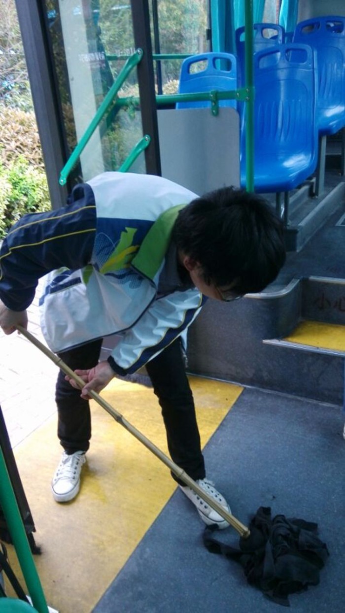 2014年 4月2日下午2點(diǎn)30分,交通工程系131422班24名同學(xué)在班主任的帶領(lǐng)下來到梅園公交總站幫忙擦洗公交車。在公交總站,同學(xué)們提前聯(lián)系了站負(fù)責(zé)人趙師傅,他給同學(xué)們分配了任務(wù)。同學(xué)們六個(gè)人一組分成了四組,每組兩名同學(xué)負(fù)責(zé)擦洗汽車外身,兩名同學(xué)負(fù)責(zé)到車廂里掃地拖地,剩余的兩名同學(xué)負(fù)責(zé)擦洗汽車玻璃、座位等。由于每輛公交車停靠總站的時(shí)間有限,同學(xué)們必須在較短的時(shí)間內(nèi)盡快完成任務(wù)??吹酵瑢W(xué)們滿頭大汗的完成各自的任務(wù),車站里的司機(jī)與員工們紛紛豎起了大拇指。當(dāng)里面負(fù)責(zé)清洗的阿姨拿著礦泉水過來給同學(xué)們喝時(shí),大家都異口同聲的說:“不要,我們有?!笨吹酵瑢W(xué)們沉浸在助人為樂的歡樂中,老師甚是欣慰。這樣不知不覺已是下午4點(diǎn)45分,同學(xué)們總共擦洗了大概有20多輛公交車,最后大家與站里面的師傅、阿姨一一道別,依依不舍的離開了公交總站,返回學(xué)校。
