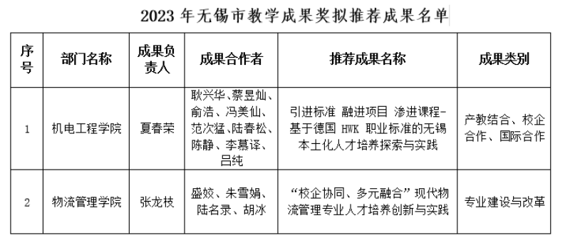 根據(jù)無(wú)錫市教育局《關(guān)于做好2023年無(wú)錫市教學(xué)成果獎(jiǎng)申報(bào)評(píng)選工作的通知》(錫教函〔2023〕152號(hào)),學(xué)校組織開展了2023年無(wú)錫市教學(xué)成果獎(jiǎng)的申報(bào)推薦工作。通過個(gè)人申報(bào)、院部遴選推薦、學(xué)校教學(xué)工作委員會(huì)評(píng)審,結(jié)合學(xué)校《關(guān)于公布2023年學(xué)校教學(xué)成果獎(jiǎng)獲獎(jiǎng)項(xiàng)目的通知》(省錫交教(2023)17號(hào)),報(bào)校領(lǐng)導(dǎo)研究決定,擬報(bào)送以下教學(xué)成果為我校報(bào)送作品。