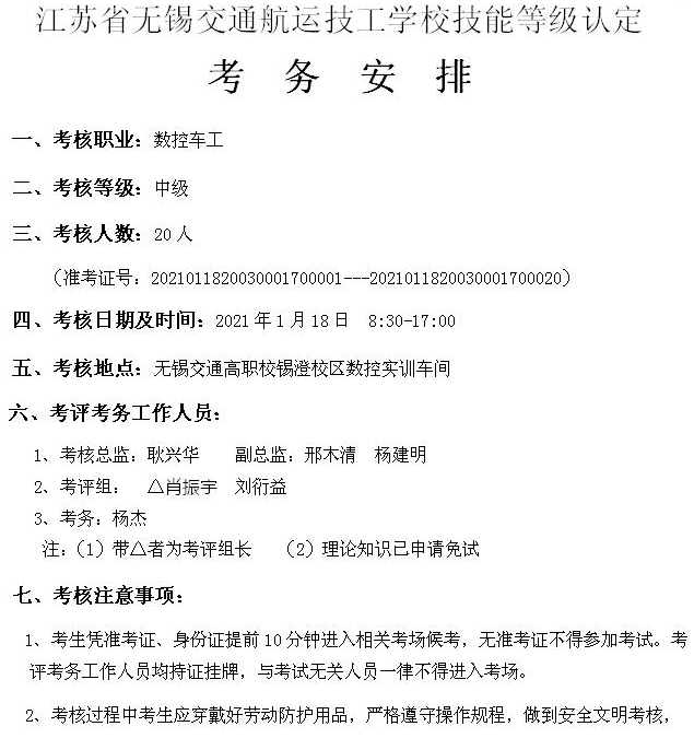 2019年11月2日數(shù)控車工考務(wù)安排表
