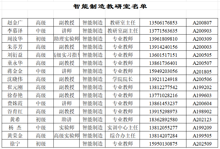 機(jī)械工程學(xué)院智能制造教研室人員情況
