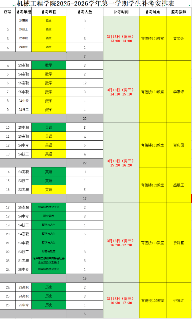補考安排表