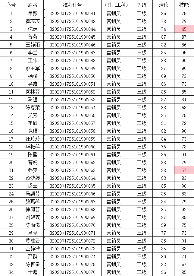 2025年10月19日,34名企業(yè)人員參加營(yíng)銷員三級(jí)技能等級(jí)認(rèn)定考試(考試批次:2025-32020017-00036),共計(jì)32名成績(jī)獲得合格?,F(xiàn)將考試成績(jī)公示如下: