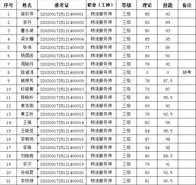 2025年12月14日,21名企業(yè)人員參加物流服務(wù)師三級技能等級認定考試(考試批次:2025-32020017-00050),共計21名成績獲得合格?,F(xiàn)將考試成績公示如下: