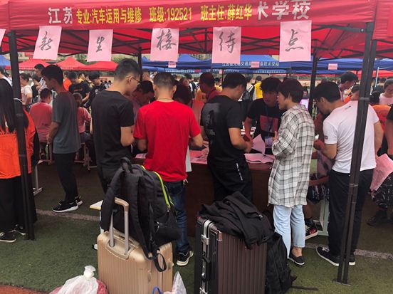 各個班級積極行動,在操場設(shè)立新生報到處,班主任現(xiàn)場接待報道學(xué)生及家長,為新生發(fā)放開學(xué)的相關(guān)材料,以及辦理入住手續(xù)等。他們頂著烈日,默默的忙碌著,為新生介紹自己的學(xué)院,自己的專業(yè)。提供人性化服務(wù),為家長提供了一站式服務(wù),可以讓忙碌的家長縮短報道時間。