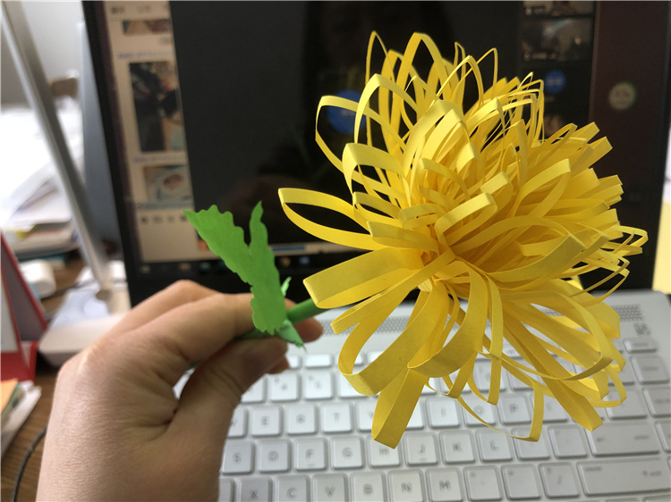 4月5日,數(shù)美設計社組織開展“線上祭英烈”活動,并組織學生折手工菊花來表達對英雄們的敬意。