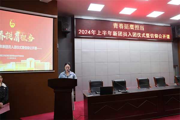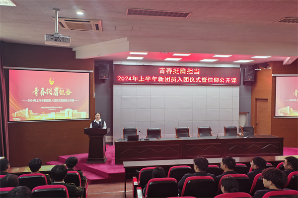 為深入貫徹習(xí)近平總書記關(guān)于青年工作的重要思想,踐行黨、團(tuán)、隊(duì)一體化培養(yǎng)體系要求,規(guī)范開展儀式教育,5月8日下午,學(xué)校團(tuán)委在學(xué)術(shù)報(bào)告廳舉行“青春挺膺擔(dān)當(dāng)”2024年新團(tuán)員入團(tuán)儀式暨信仰公開課,引導(dǎo)廣大團(tuán)員青年弘揚(yáng)五四精神、勇?lián)啻菏姑詫?shí)際行動(dòng)爭(zhēng)做有理想、敢擔(dān)當(dāng)、能吃苦、肯奮斗的新時(shí)代好青年。校團(tuán)委委員、各二級(jí)學(xué)院團(tuán)總支書記、團(tuán)總支委員、團(tuán)支部書記、2024年上半年新發(fā)展團(tuán)員、優(yōu)秀團(tuán)員代表等200余人參加儀式,活動(dòng)由校團(tuán)委委員任海波主持。
