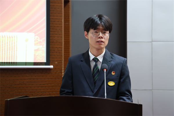 汽車工程學(xué)院曹陽(yáng)作為新團(tuán)員代表發(fā)言,他表示將以此次入團(tuán)為契機(jī),堅(jiān)定理想信念,不斷追求進(jìn)步,以更高標(biāo)準(zhǔn)要求自己,以實(shí)際行動(dòng)踐行入團(tuán)誓言,為學(xué)校的發(fā)展和社會(huì)的進(jìn)步貢獻(xiàn)自己的力量。交通工程學(xué)院張昊作為優(yōu)秀團(tuán)員代表發(fā)言,他號(hào)召全體新團(tuán)員在平時(shí)的學(xué)習(xí)、生活和社會(huì)實(shí)踐中,時(shí)刻牢記自己是一名共青團(tuán)員,按照?qǐng)F(tuán)員標(biāo)準(zhǔn)嚴(yán)格要求自己,在同學(xué)中起到模范帶頭作用,努力成為其他同學(xué)的榜樣。
