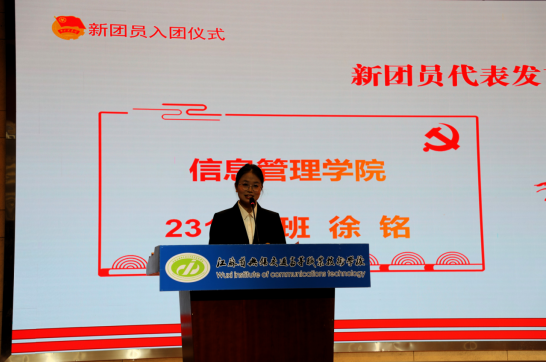 物流管理學(xué)院尹娜同學(xué)和信息管理學(xué)院徐銘同學(xué)作為新團(tuán)員代表發(fā)言,她們表示將以此次入團(tuán)為契機(jī),堅(jiān)定理想信念,不斷追求進(jìn)步,以更高標(biāo)準(zhǔn)要求自己,以實(shí)際行動(dòng)踐行入團(tuán)誓言,為學(xué)校的發(fā)展和社會(huì)的進(jìn)步貢獻(xiàn)自己的青春力量。