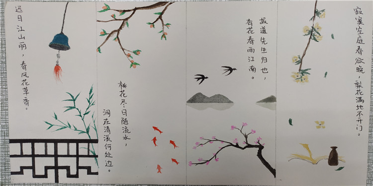 “書香彩繪”主題創(chuàng)意設(shè)計(jì)中,同學(xué)們創(chuàng)意設(shè)計(jì)制作手抄報(bào)、主題海報(bào)或書簽,用筆墨為書香校園添彩;